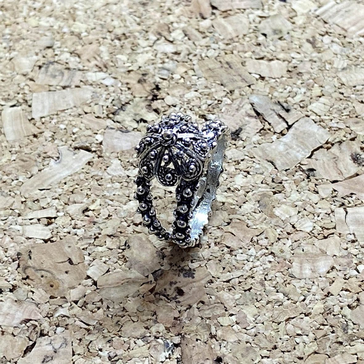 Anello sardo con bottone in argento 925, lavorato a mano, nichel free.